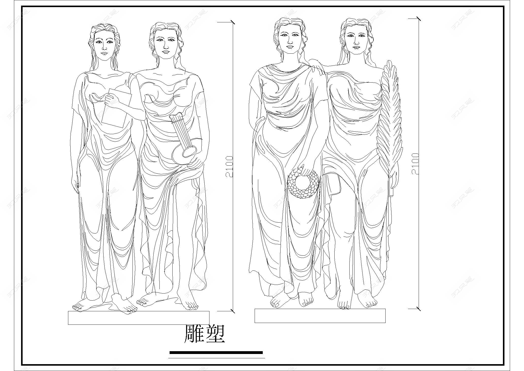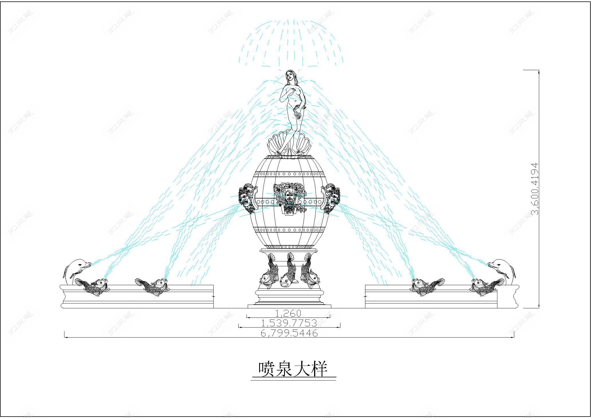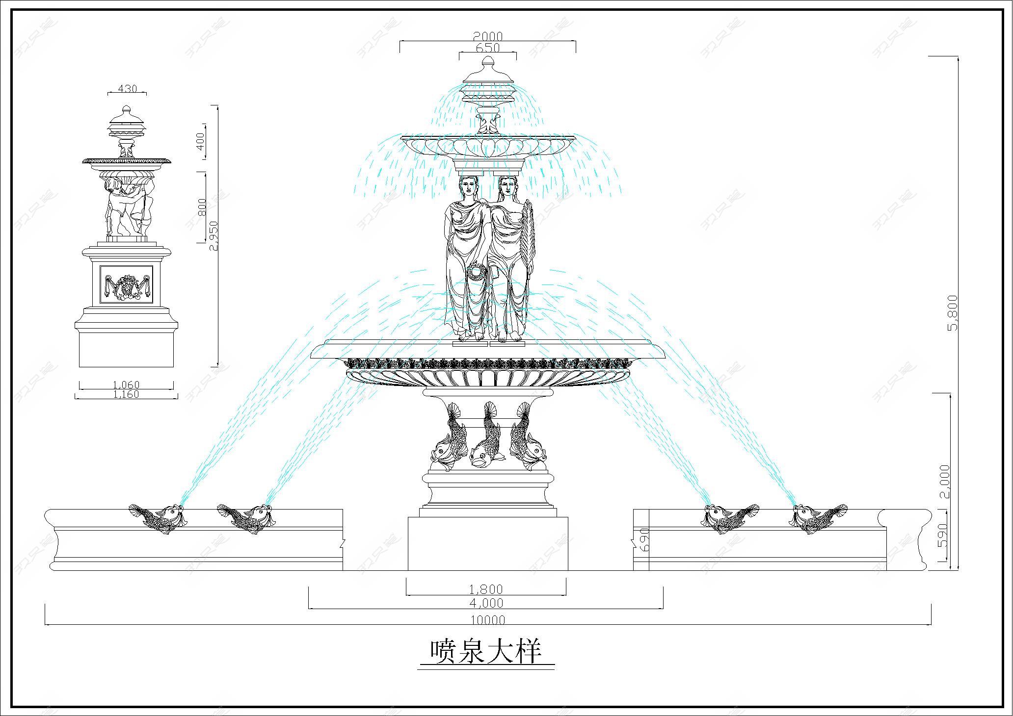 • 欧式景观GRC罗马柱造型线条雕塑喷泉大样图