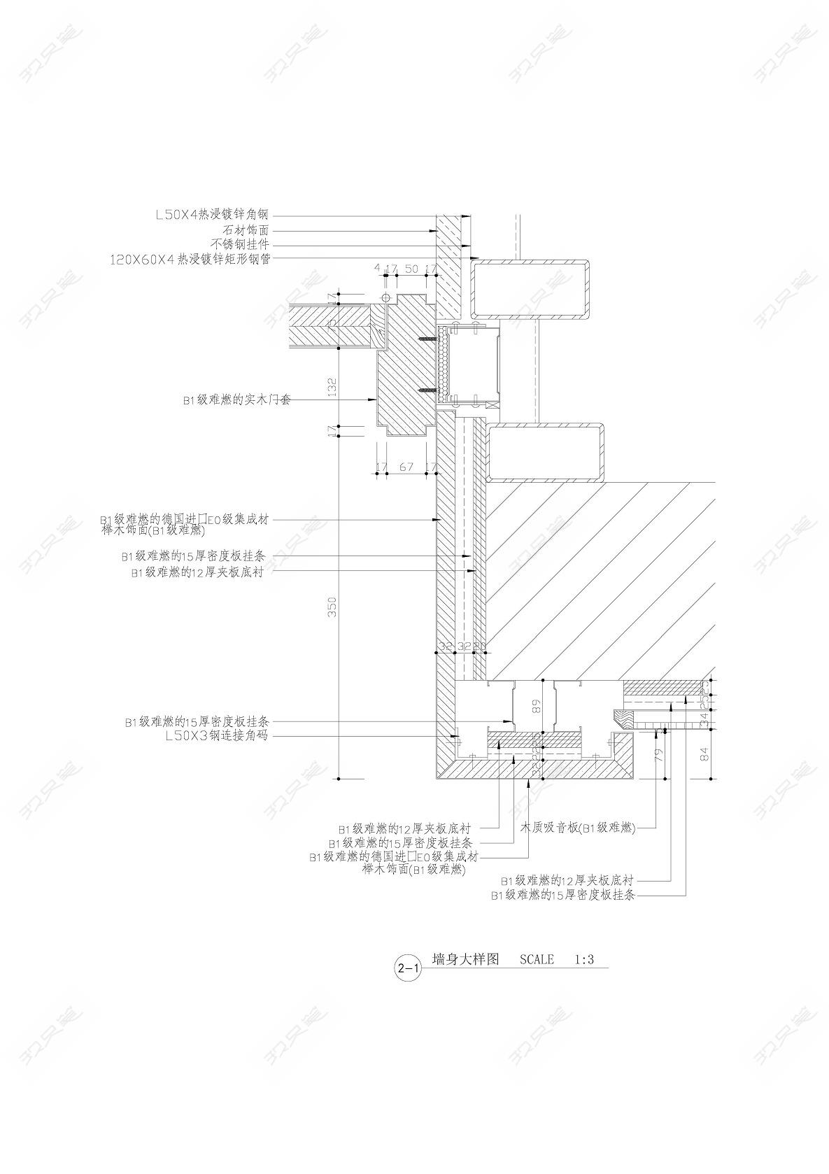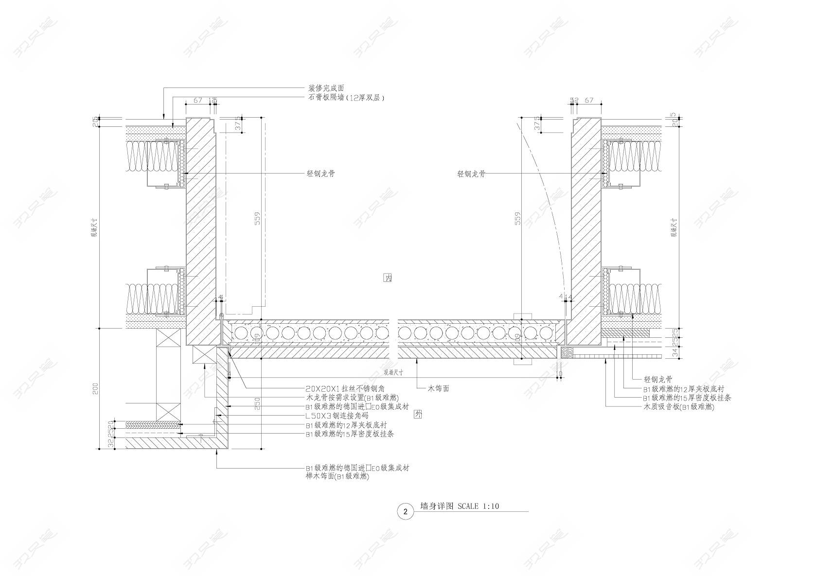 • 木饰面墙面木质吸音板墙面墙身大样图节点图剖面图详图