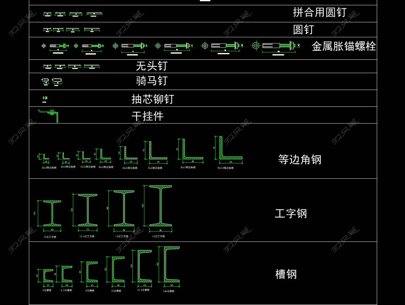 • 钢梁、螺栓、角钢、五金图块