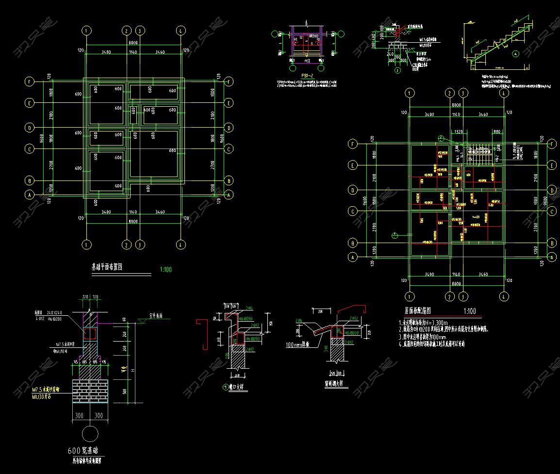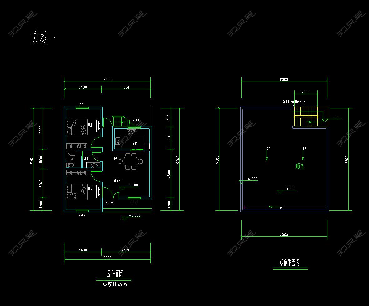 • 农家乐农村自建房平房全套施工图甲级设计院设计含结构60平米一层8x9.6米