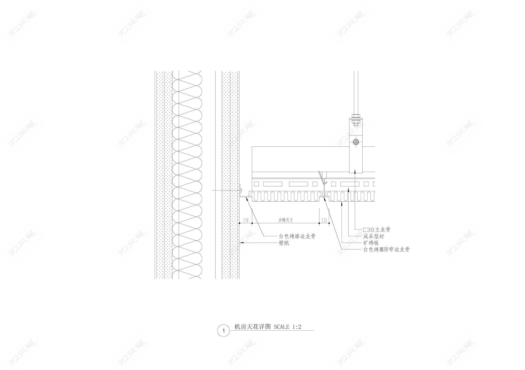 • 机房吸音矿棉板吊顶天花大样图节点图剖面图详图