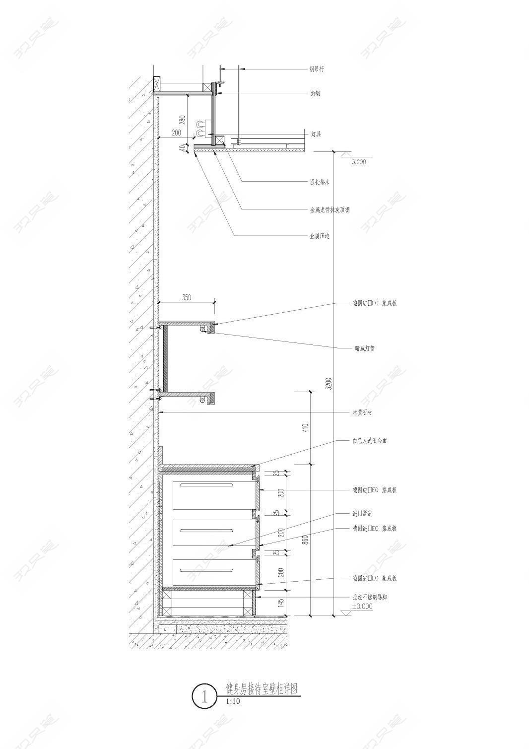 • 健身房接待室壁柜大样图节点图剖面图详图