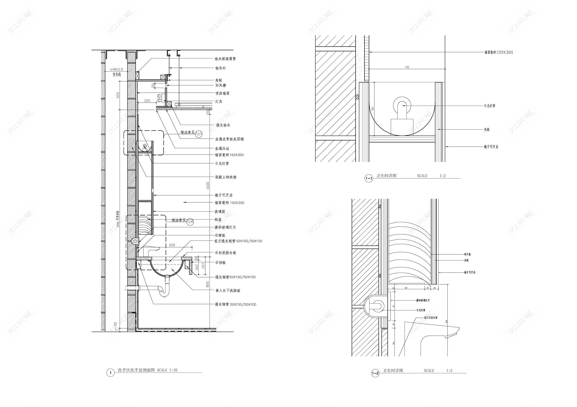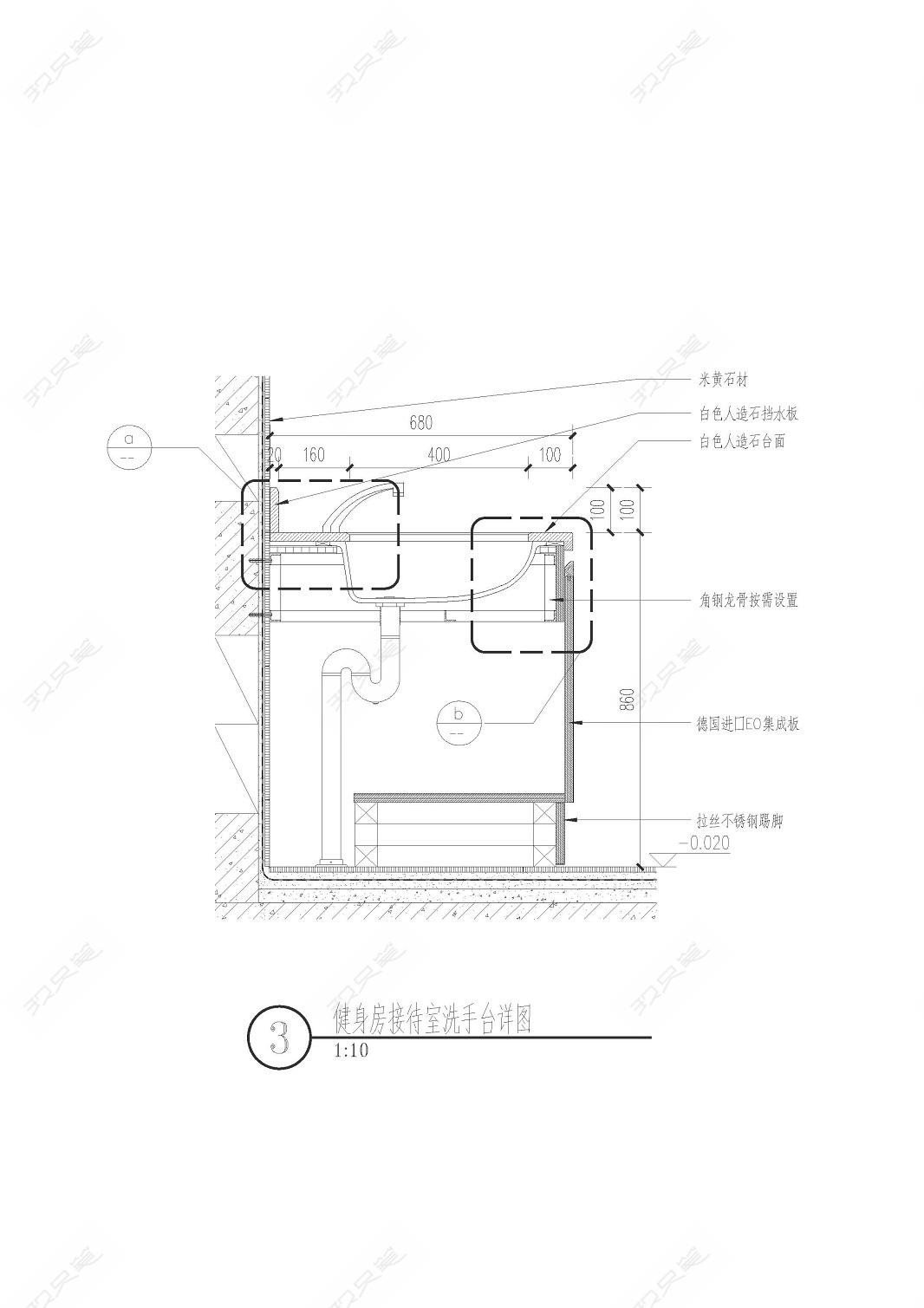 • 健身房接待室洗手台洗漱台台下盆浴室柜大样图节点图剖面图详图