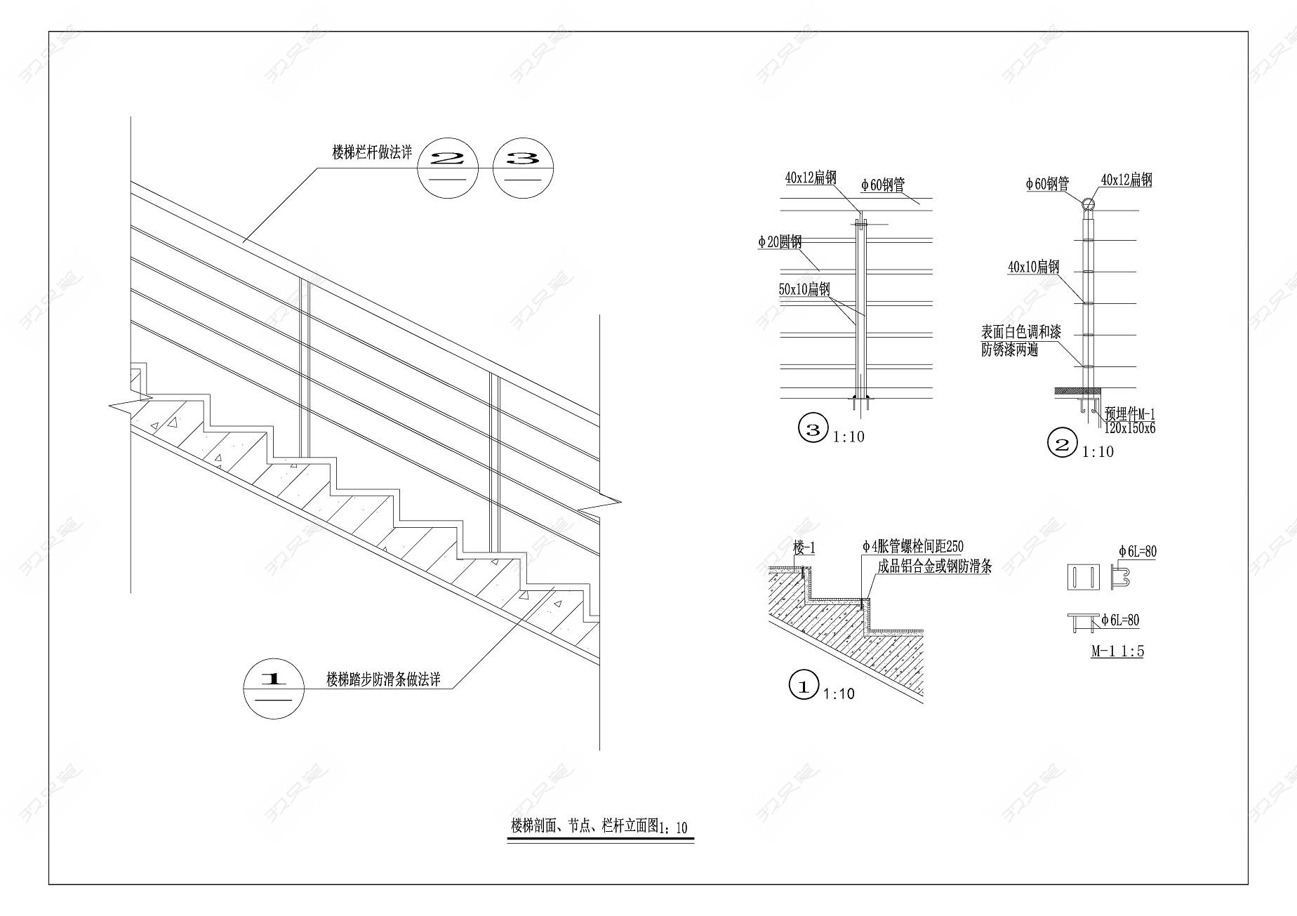 • 楼梯踏步横线型护栏扶手栏杆大样图节点图剖面图详图