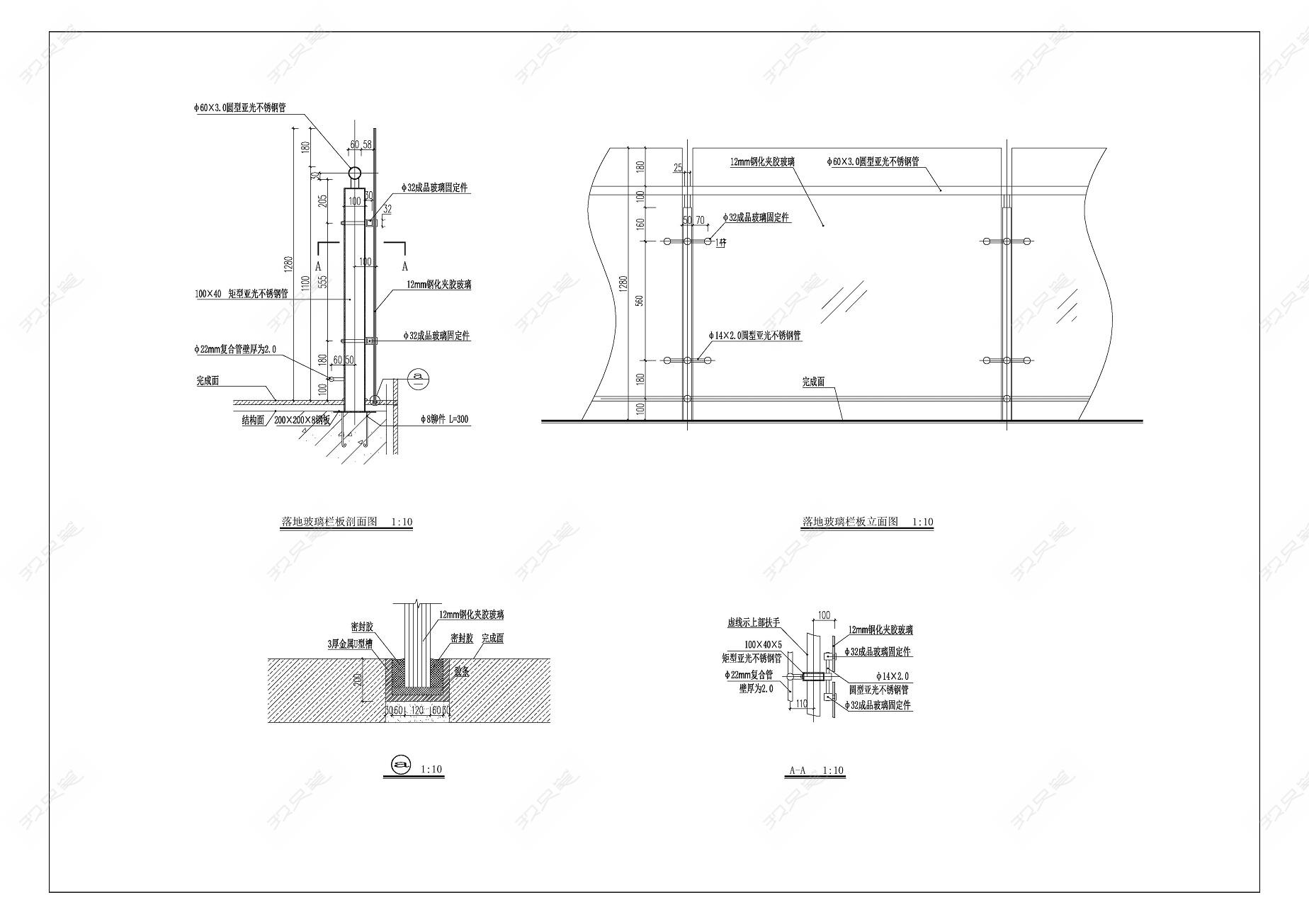 • 落地玻璃栏板玻璃护栏栏杆立面图大样图节点图剖面图详图