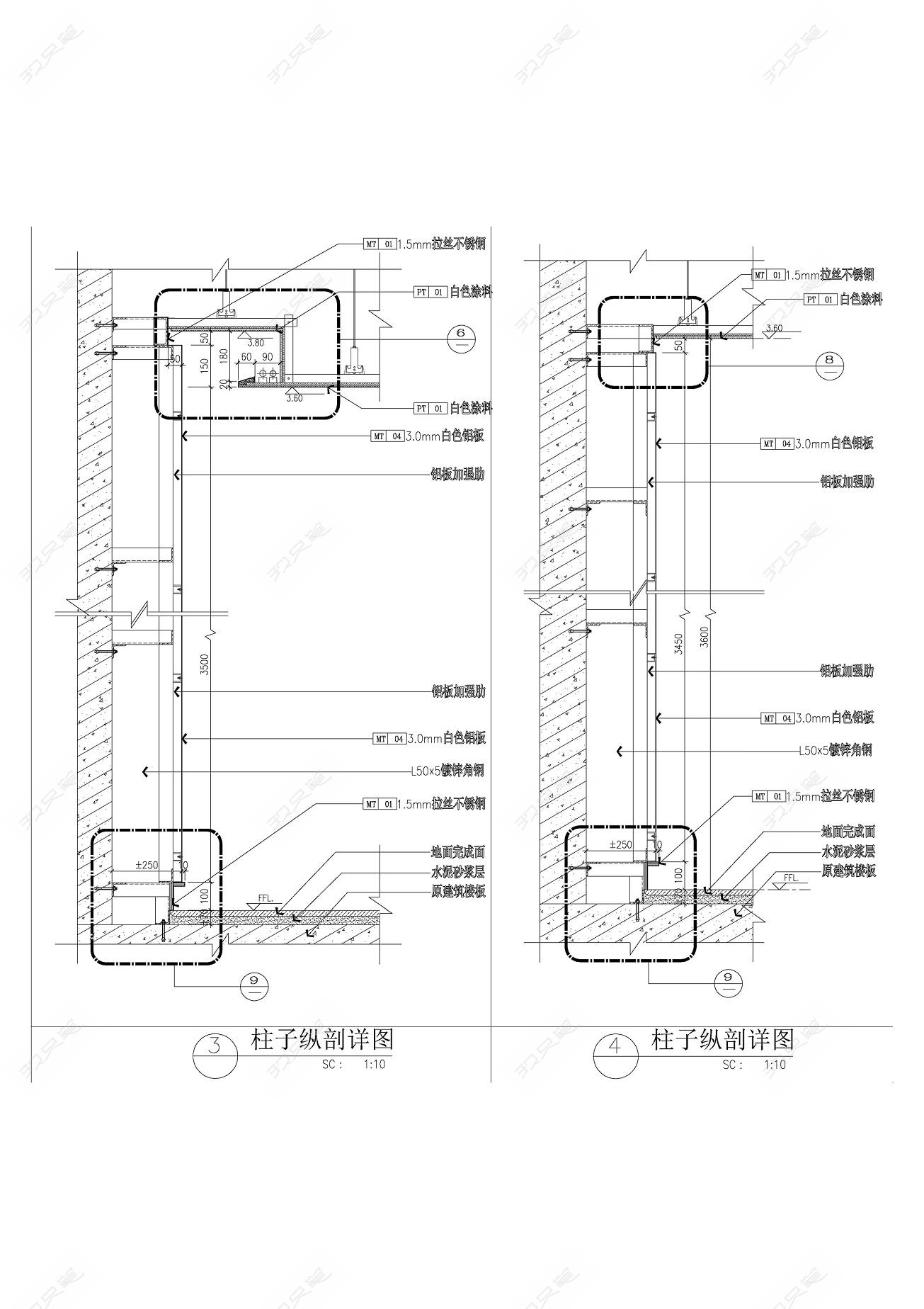 • 铝板圆柱柱子吊顶造型踢脚收口大样图节点图剖面图详图