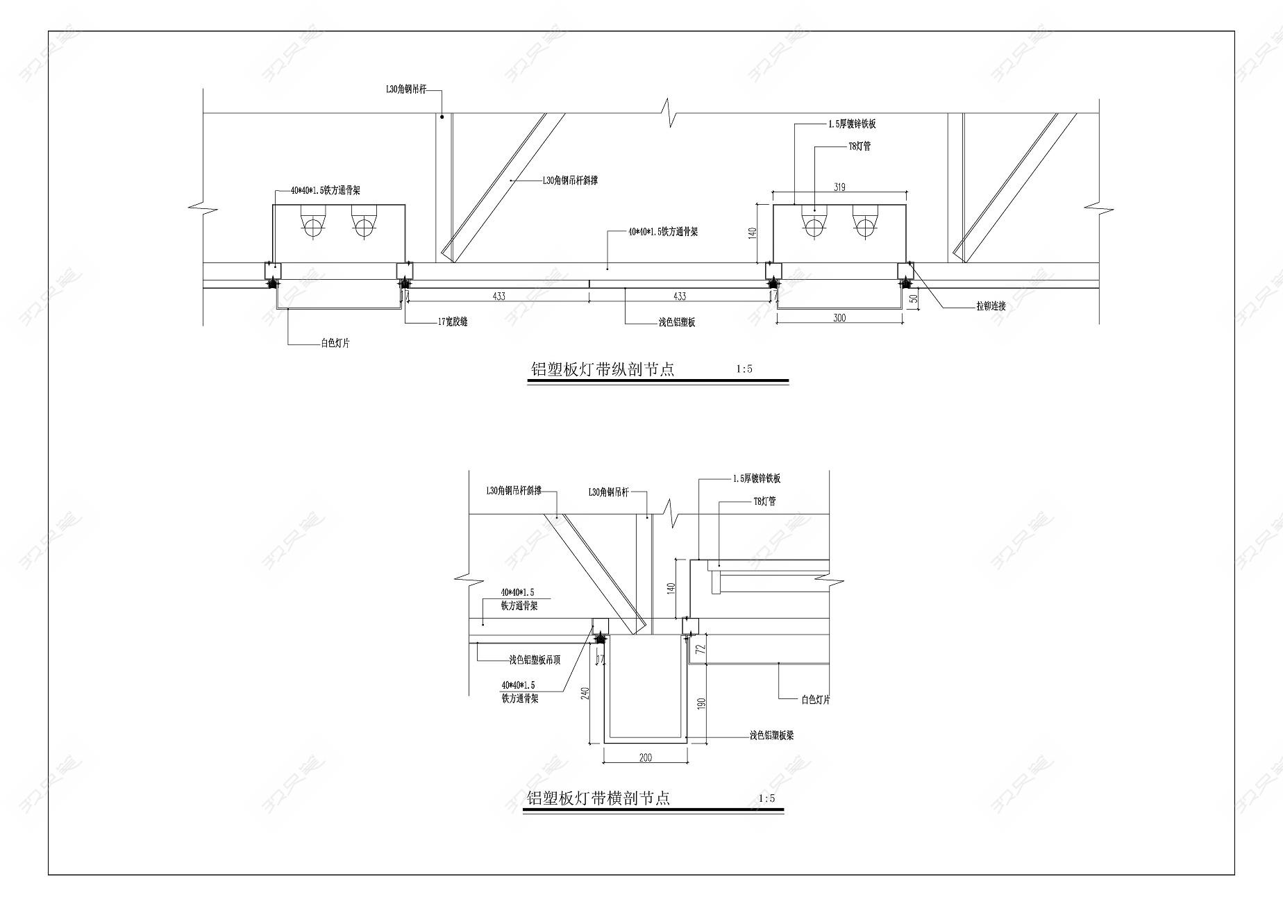 • 铝塑板铝板灯带造型吊顶横剖纵剖大样图节点图剖面图详图