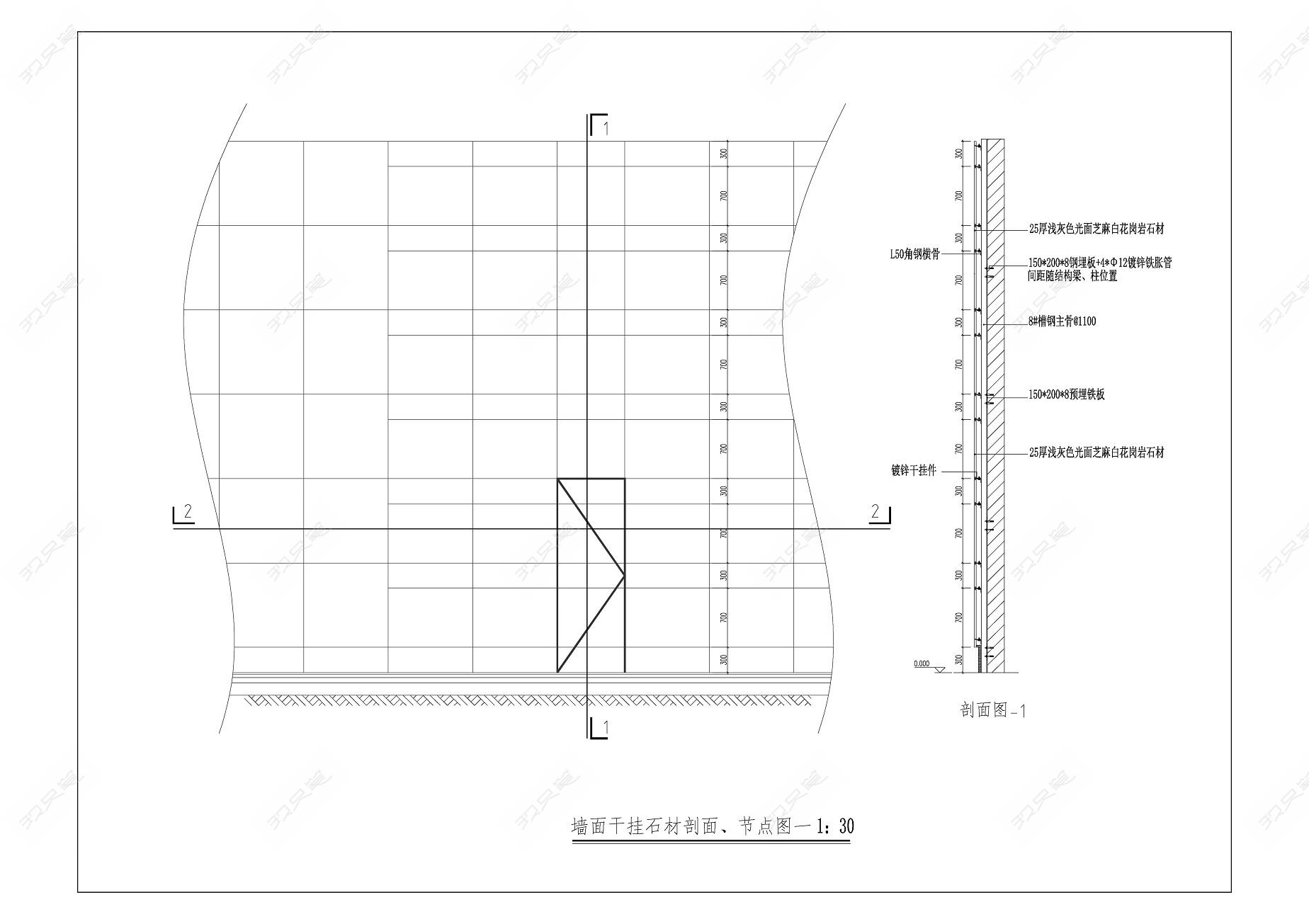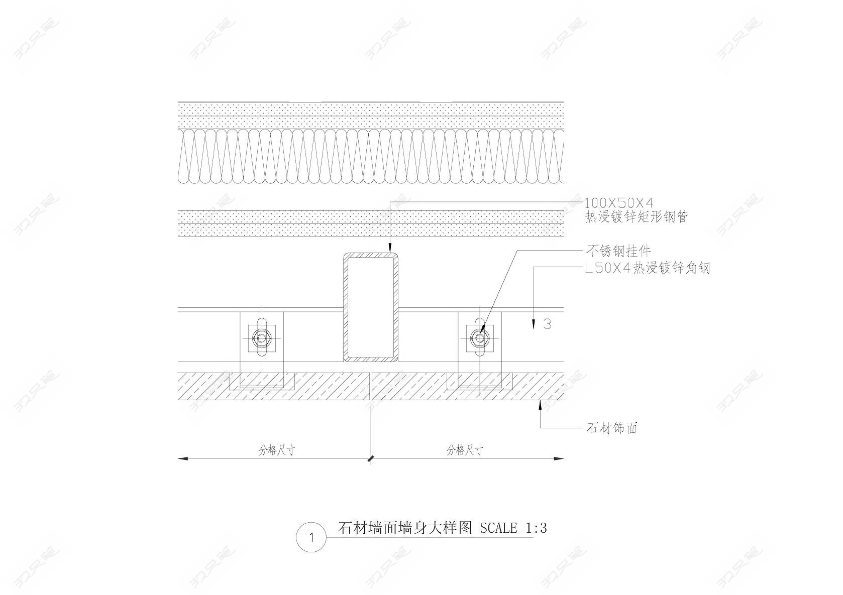 • 墙面干挂石材横剖纵剖大样图节点图剖面图详图