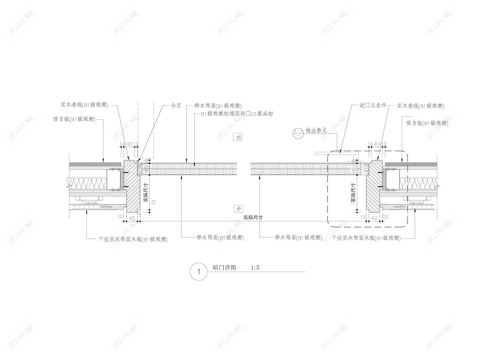 • 木质吸音板墙面暗门大样图节点图剖面图详图
