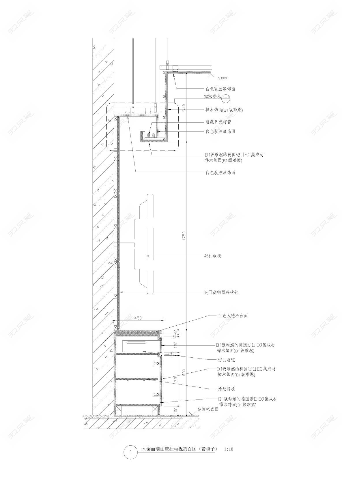 • 木饰面墙面壁挂电视大样图节点图剖面图详图