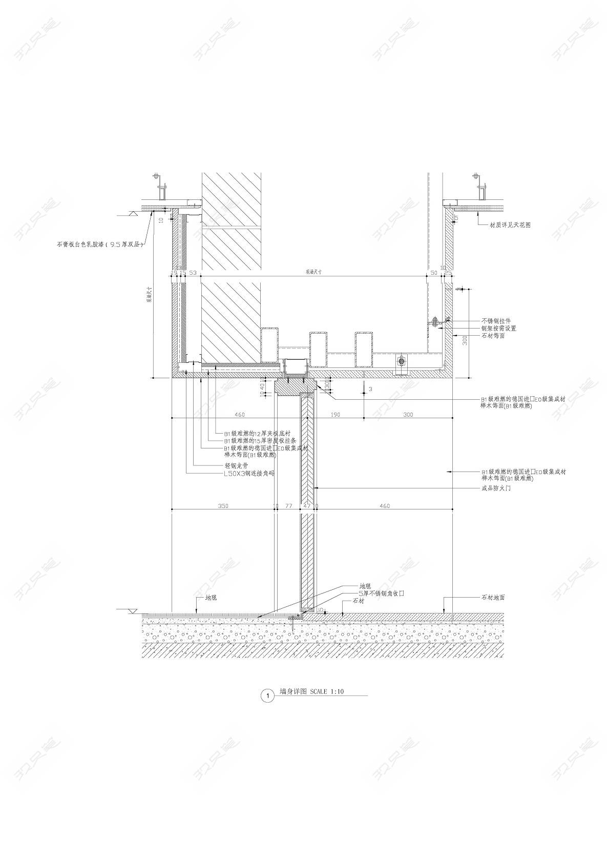 • 密缝干挂石材墙面墙身大样图节点图剖面图详图