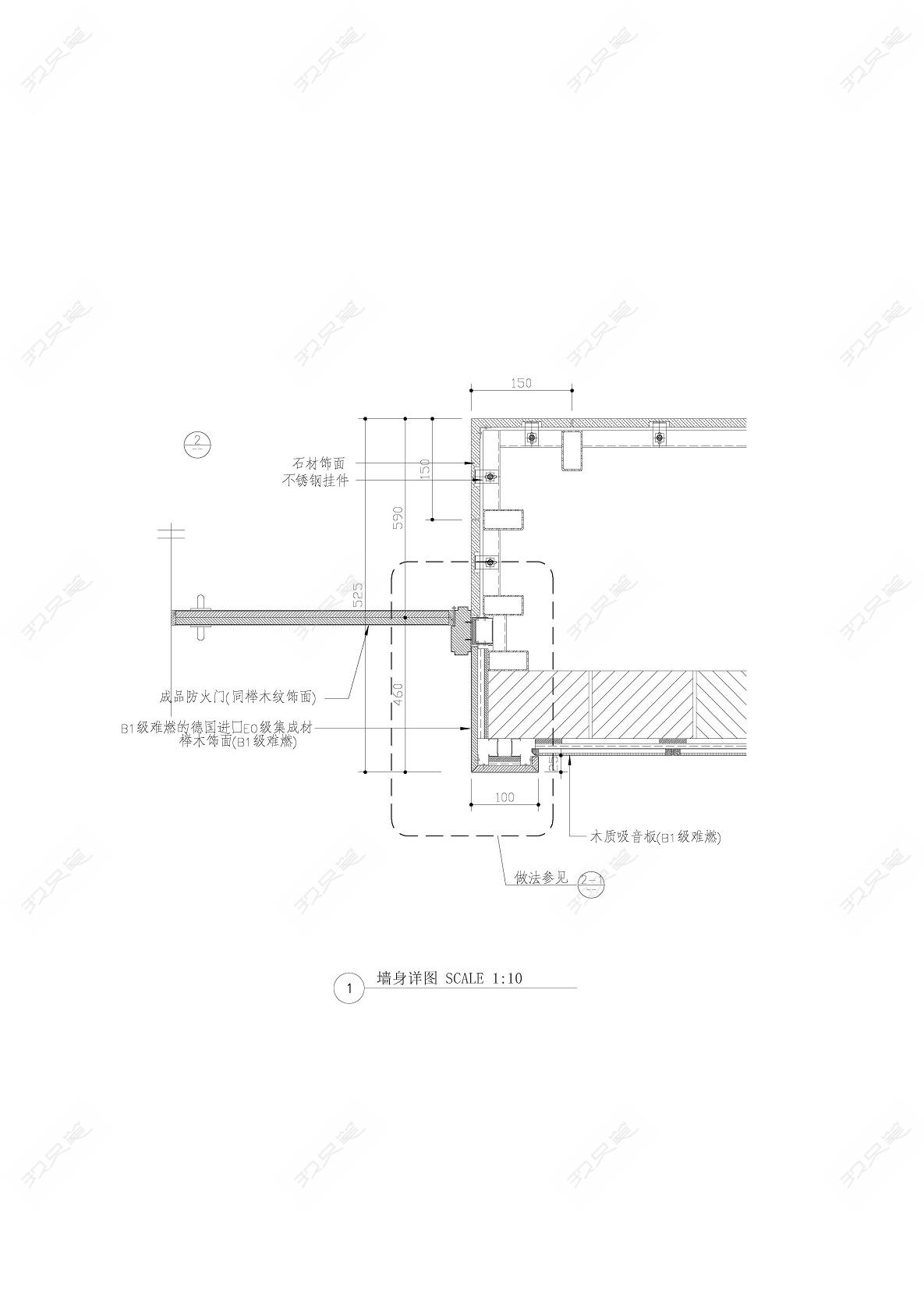 • 木饰面墙面防火门墙身大样图节点图剖面图详图