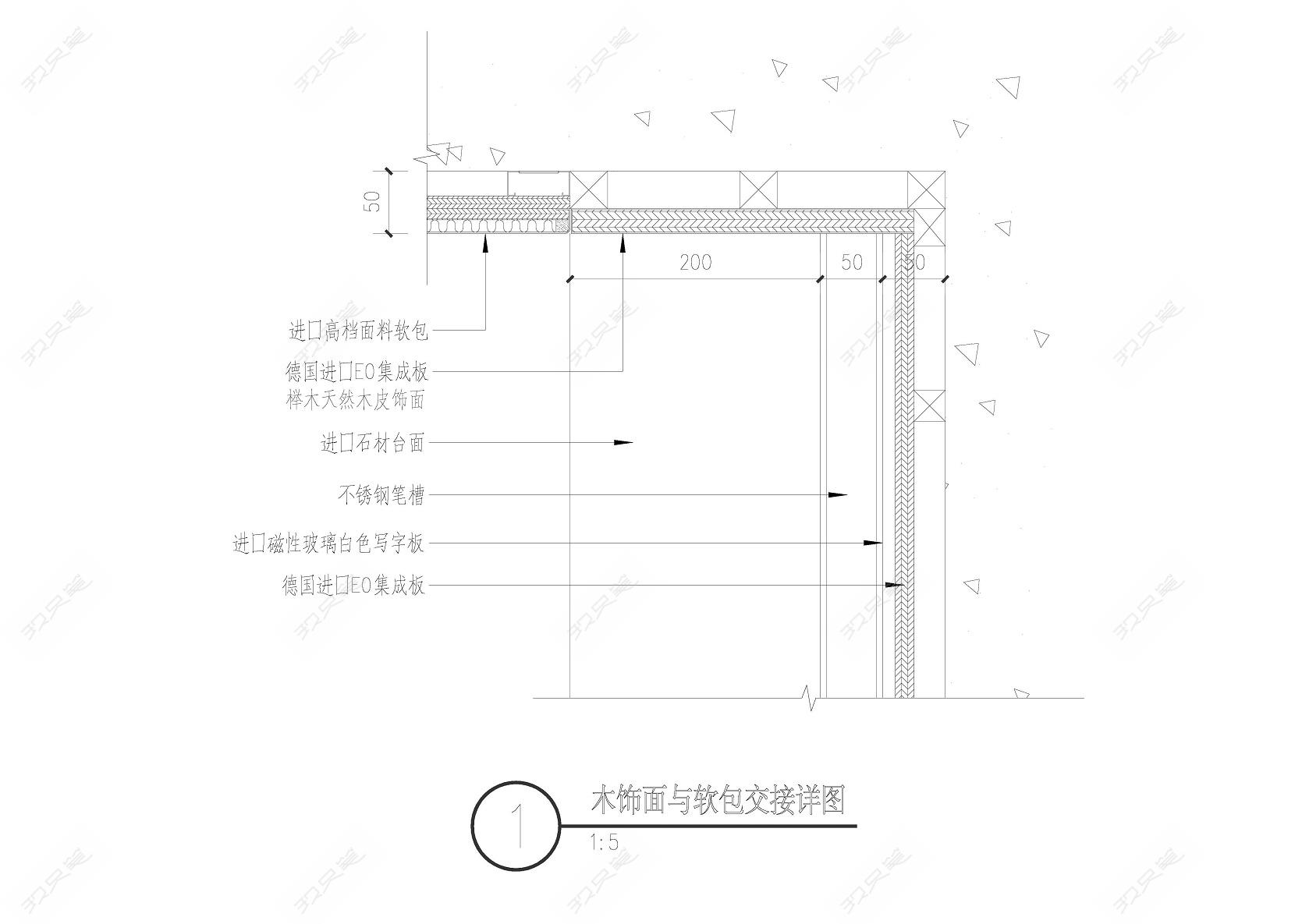 • 木饰面墙面与软包墙面交接收口大样图节点图剖面图详图