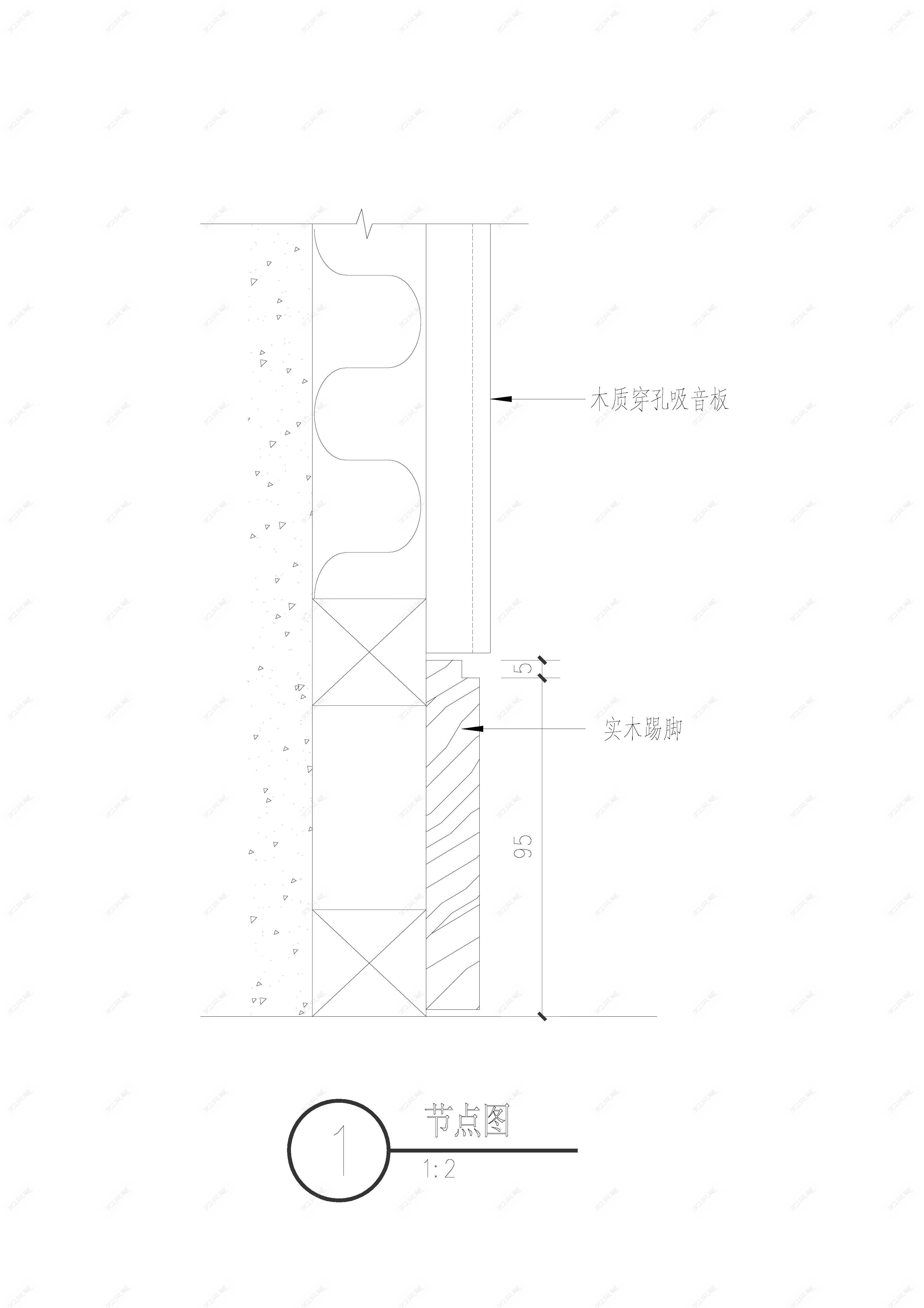 • 木质吸音板墙面安装实木木质踢脚线大样图节点图剖面图详图