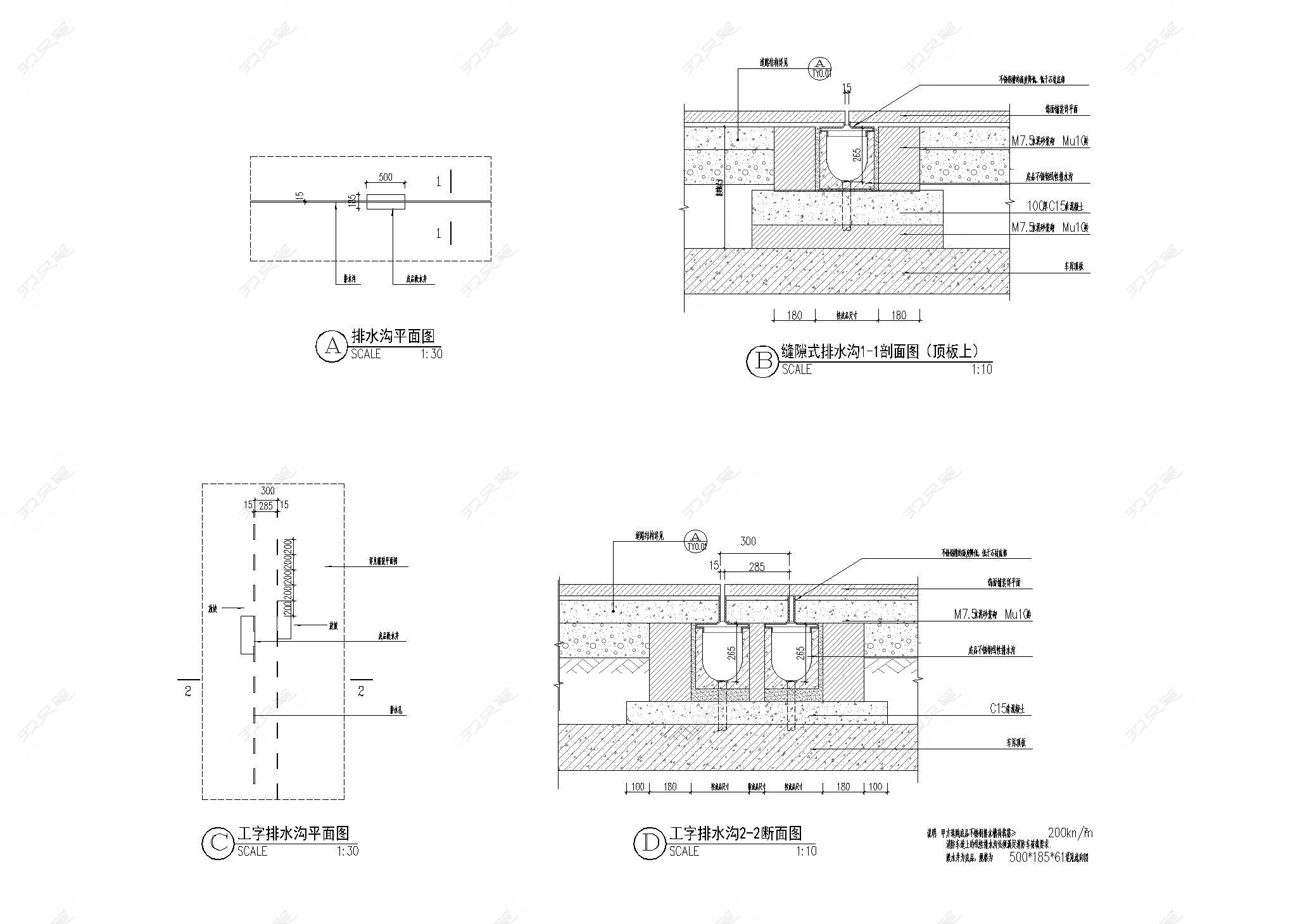 • 园林景观户外线型缝隙式排水沟节点