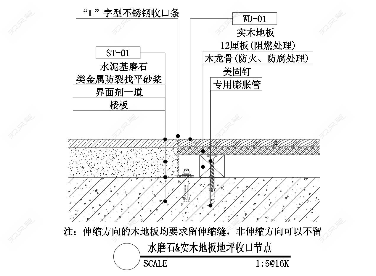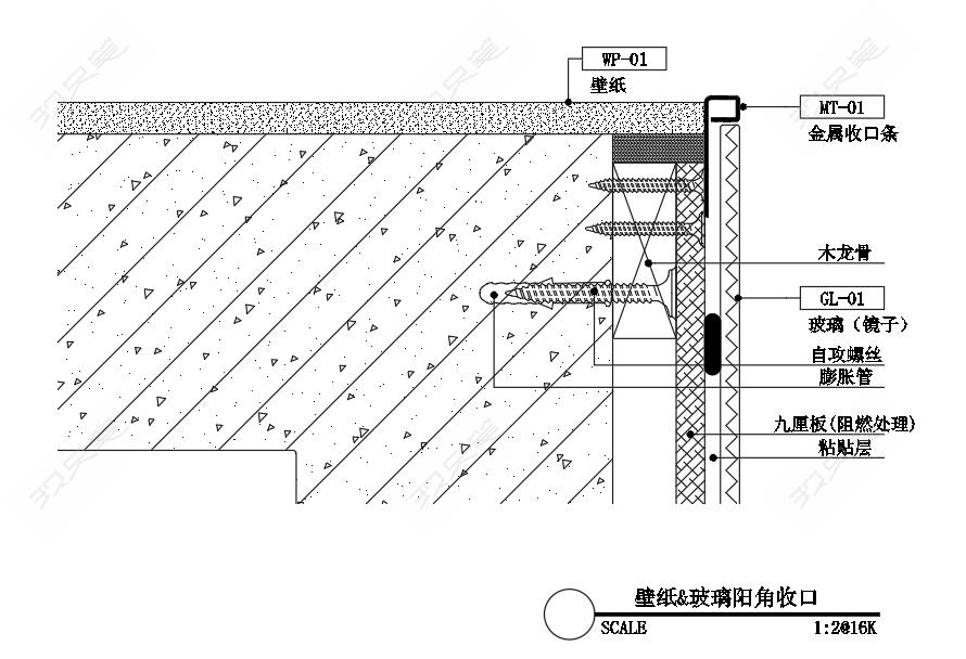 • 卡式龙骨木基层粘贴玻璃(镜子)与钢骨架木基层干挂木饰面阳角收口节点